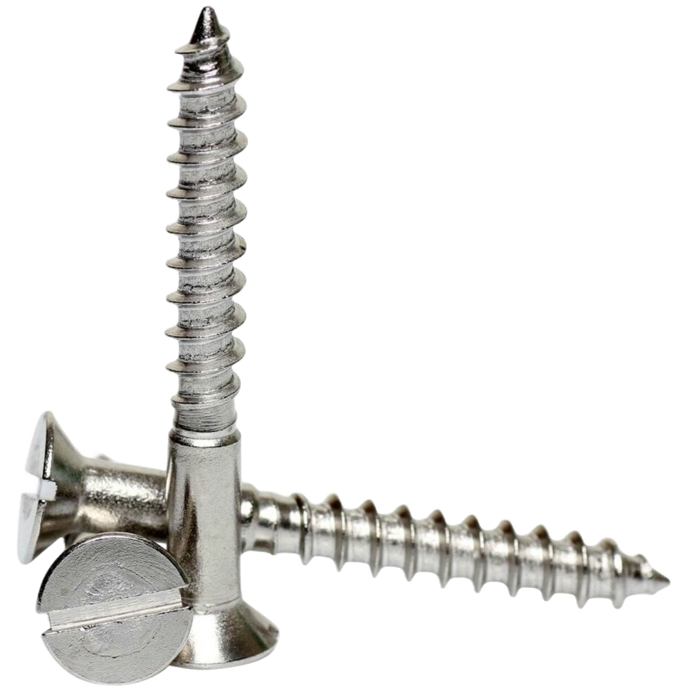known as flathead woodscrews, are specifically designed screws commonly used in woodworking projects. They have a tapered head with a flat top surface, allowing them to sit flush or slightly below the surface of the material they are being driven into.